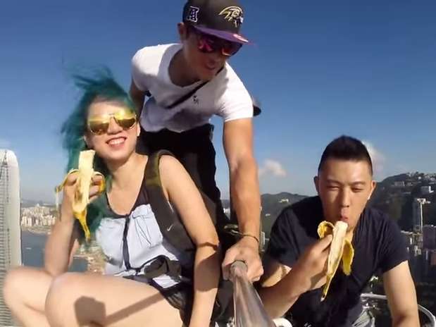 Três amigos em Hong Kong criaram o que a imprensa está chamando de selfie mais perigosa do mundo. Os fotógrafos Daniel Lau, Andrew Tso e A.S subiram no topo do quinto maior arranha-céu de Hong Kong, com 346 metros de altura, para tirar fotos e gravar um vídeo, segundo informou o Cnet. Os jovens usaram um monopé para segurar a câmera, e, já no topo do edifício, comeram bananas. Foi usada também uma lente grande angular para registrar a vista de Hong Kong. Não ficou claro como eles chegaram ao topo do prédio, e aparentemente, eles não estão usando nenhum tipo de equipamento de segurança no vídeo. Confira tipos de selfie e veja em qual vocês se encaixa